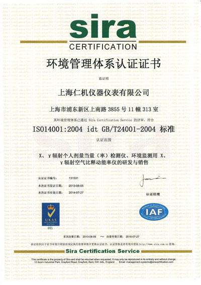 sira 环境管理系统认证证书
