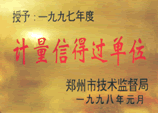 农业部全面质量管理达标证书